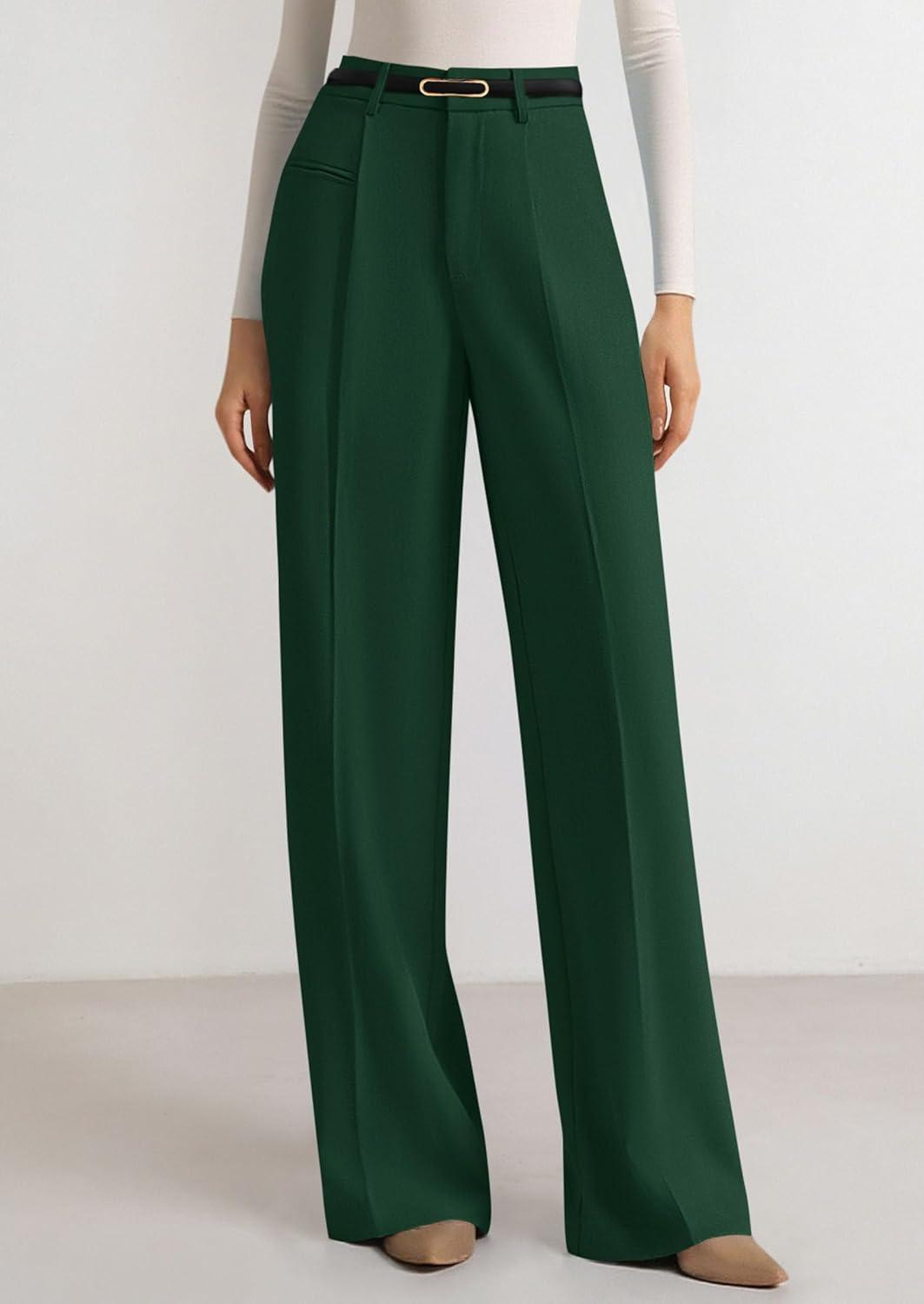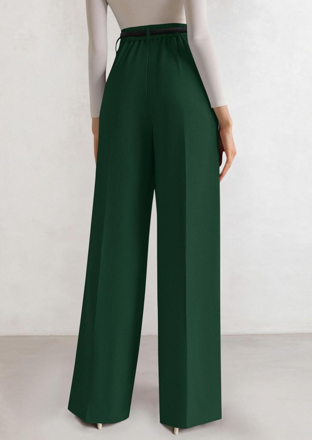 PRETTYGARDEN Womens Wide Leg Dress Pants 2025 Business Casual Flowy Work Palazzo Pants High Waisted Slacks Trousers(Dark Green)