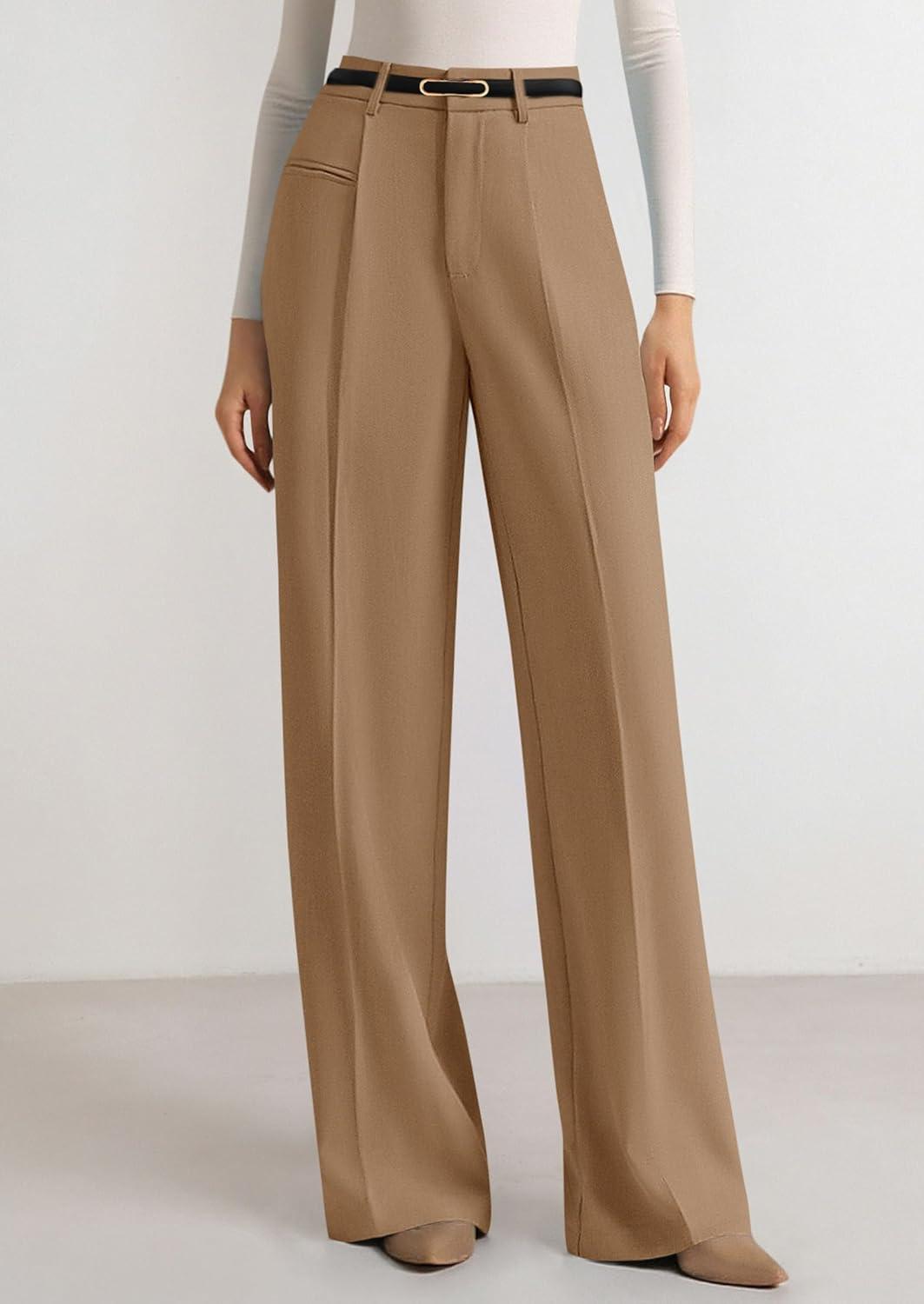 PRETTYGARDEN Womens Wide Leg Dress Pants 2025 Business Casual Flowy Work Palazzo Pants High Waisted Slacks Trousers(Khaki)