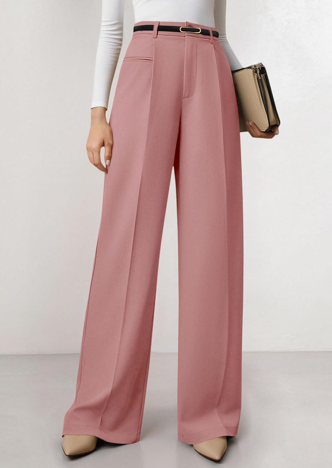 PRETTYGARDEN Womens Wide Leg Dress Pants 2025 Business Casual Flowy Work Palazzo Pants High Waisted Slacks Trousers(Pink)