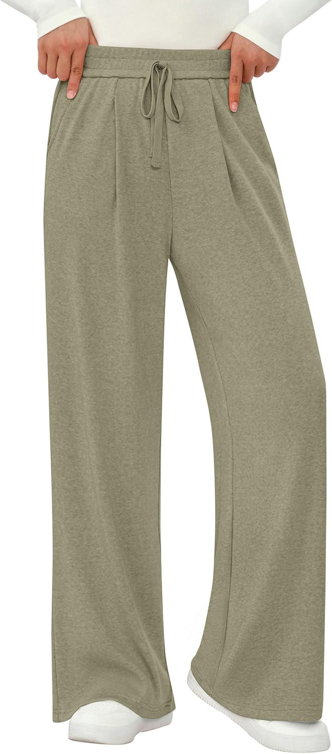PRETTYGARDEN Women's Wide Leg Pants 2025 Fall Clothes Elastic High Waisted Knit Lounge Palazzo Pant Trousers with Pockets(Green)