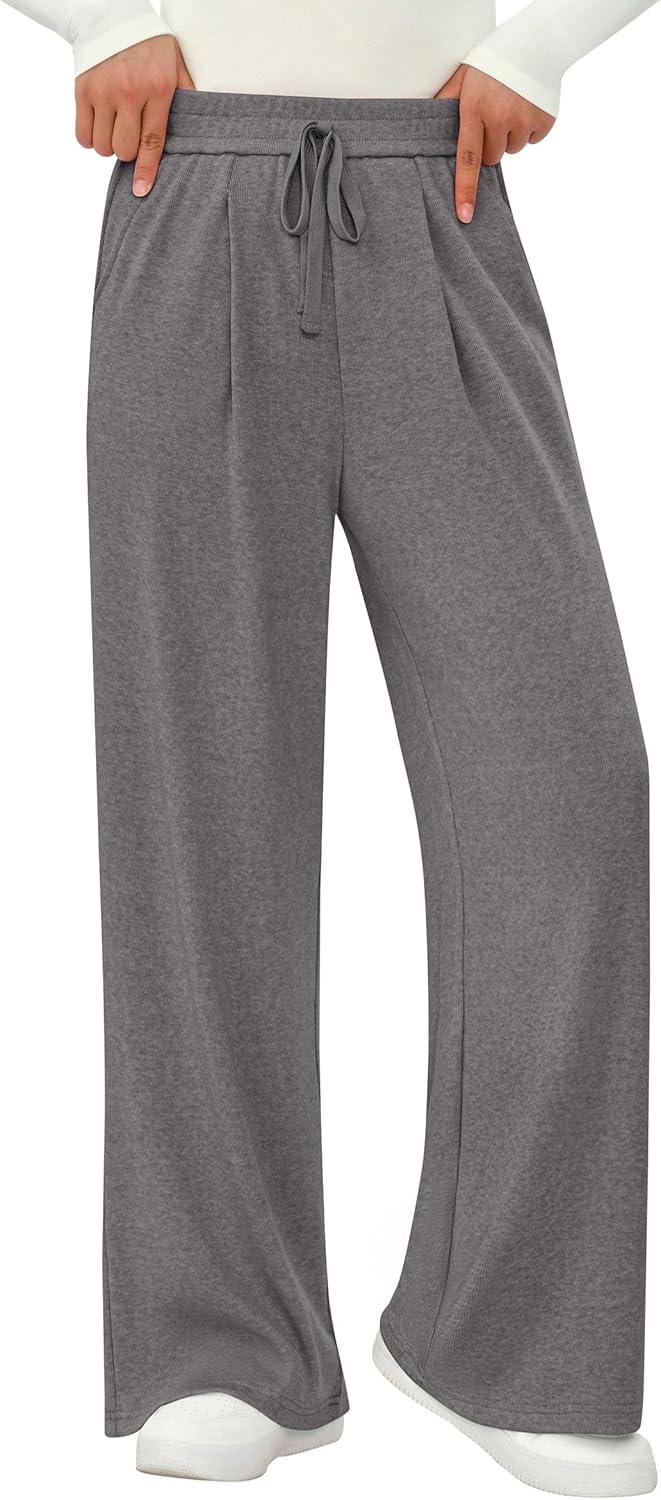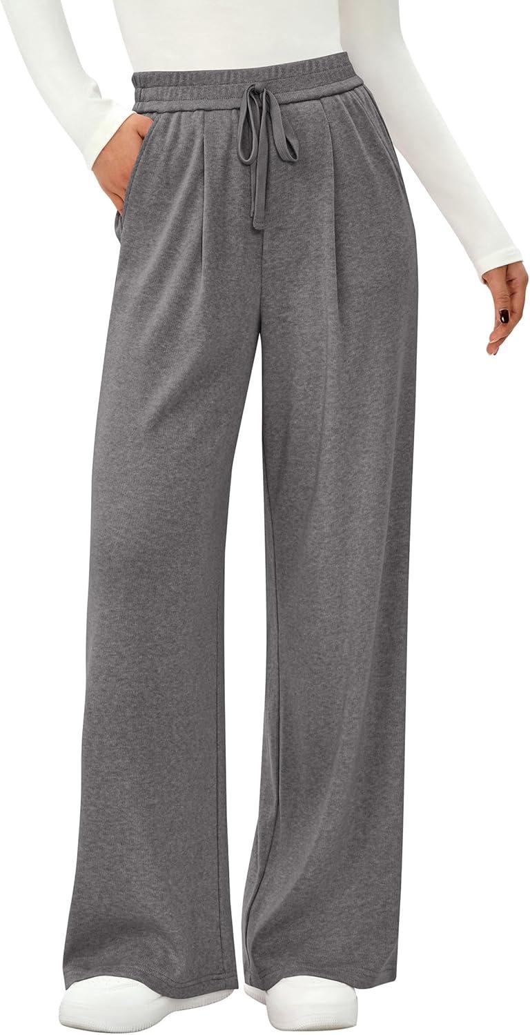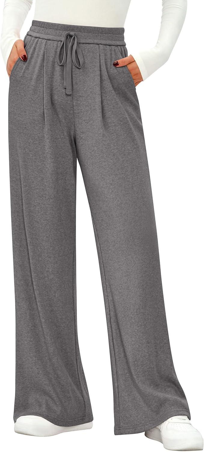 PRETTYGARDEN Women's Wide Leg Pants 2025 Fall Clothes Elastic High Waisted Knit Lounge Palazzo Pant Trousers with Pockets(Grey)