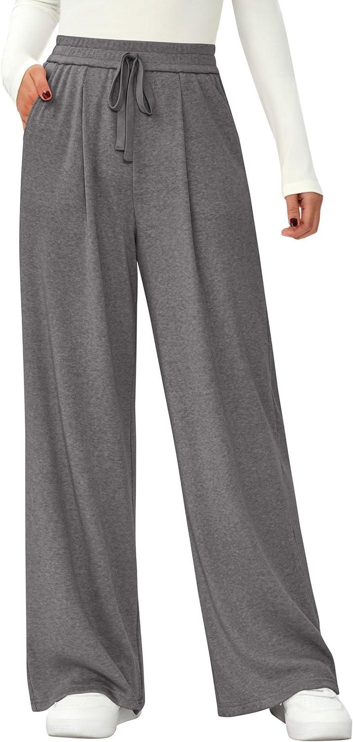 PRETTYGARDEN Women's Wide Leg Pants 2025 Fall Elastic High Waisted Knit Casual Lounge Palazzo Pant Trousers with Pockets(Grey)