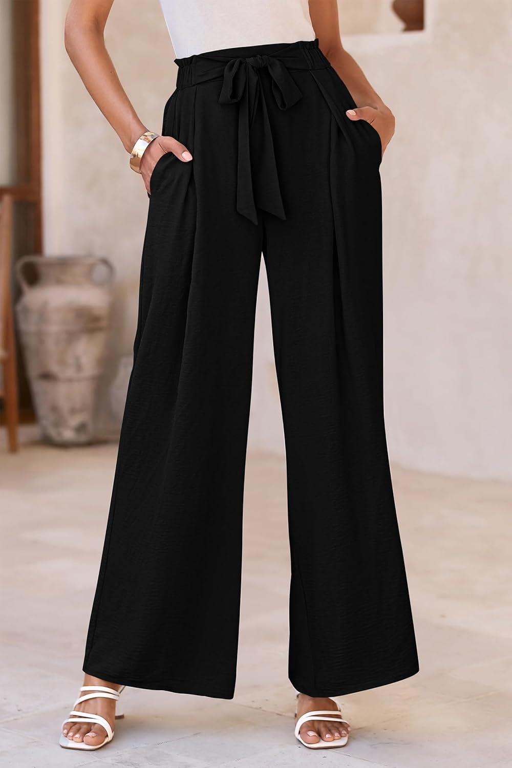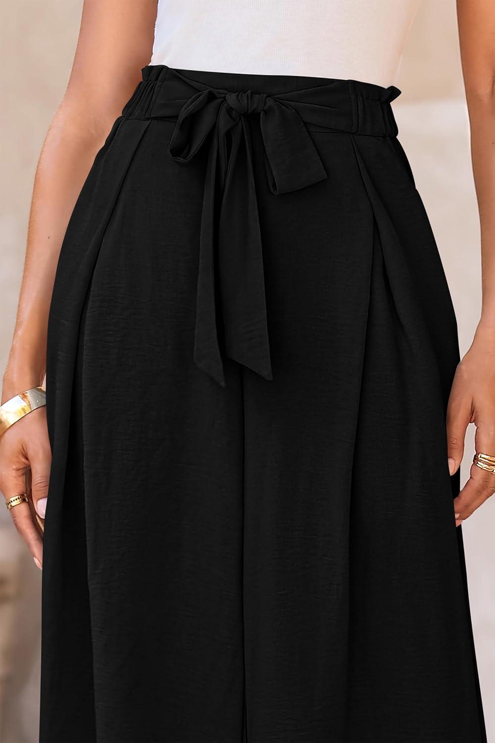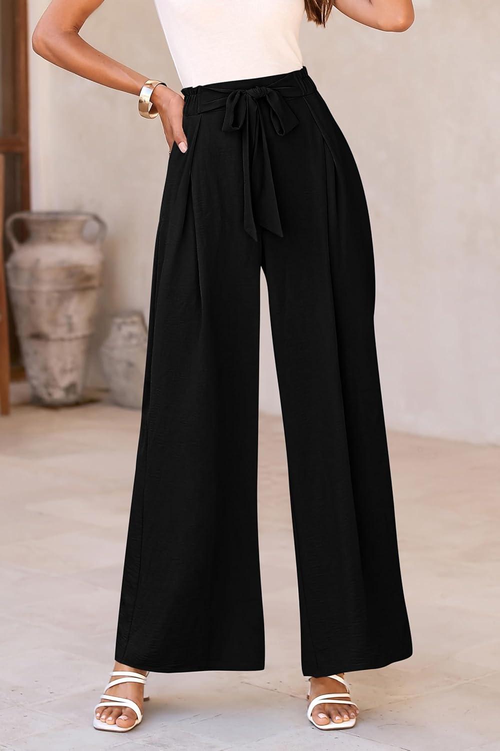 PRETTYGARDEN Women's Wide Leg Work Pants Business Casual High Waisted Loose Palazzo Trouser Summer Clothes(Black)