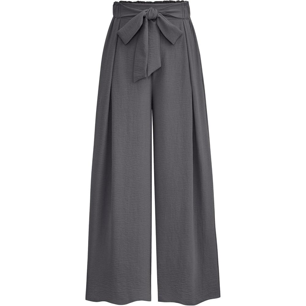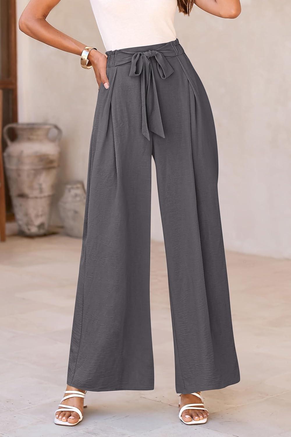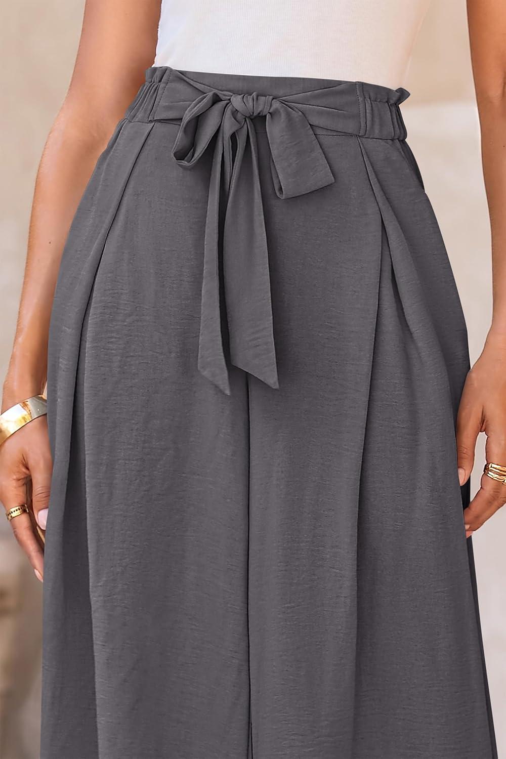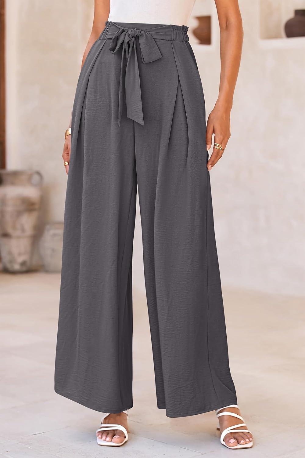 PRETTYGARDEN Women’s Wide Leg Work Pants Business Casual High Waisted Loose Palazzo Trouser Summer Clothes(Dark Grey)