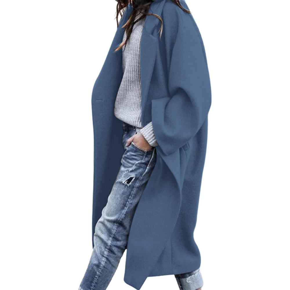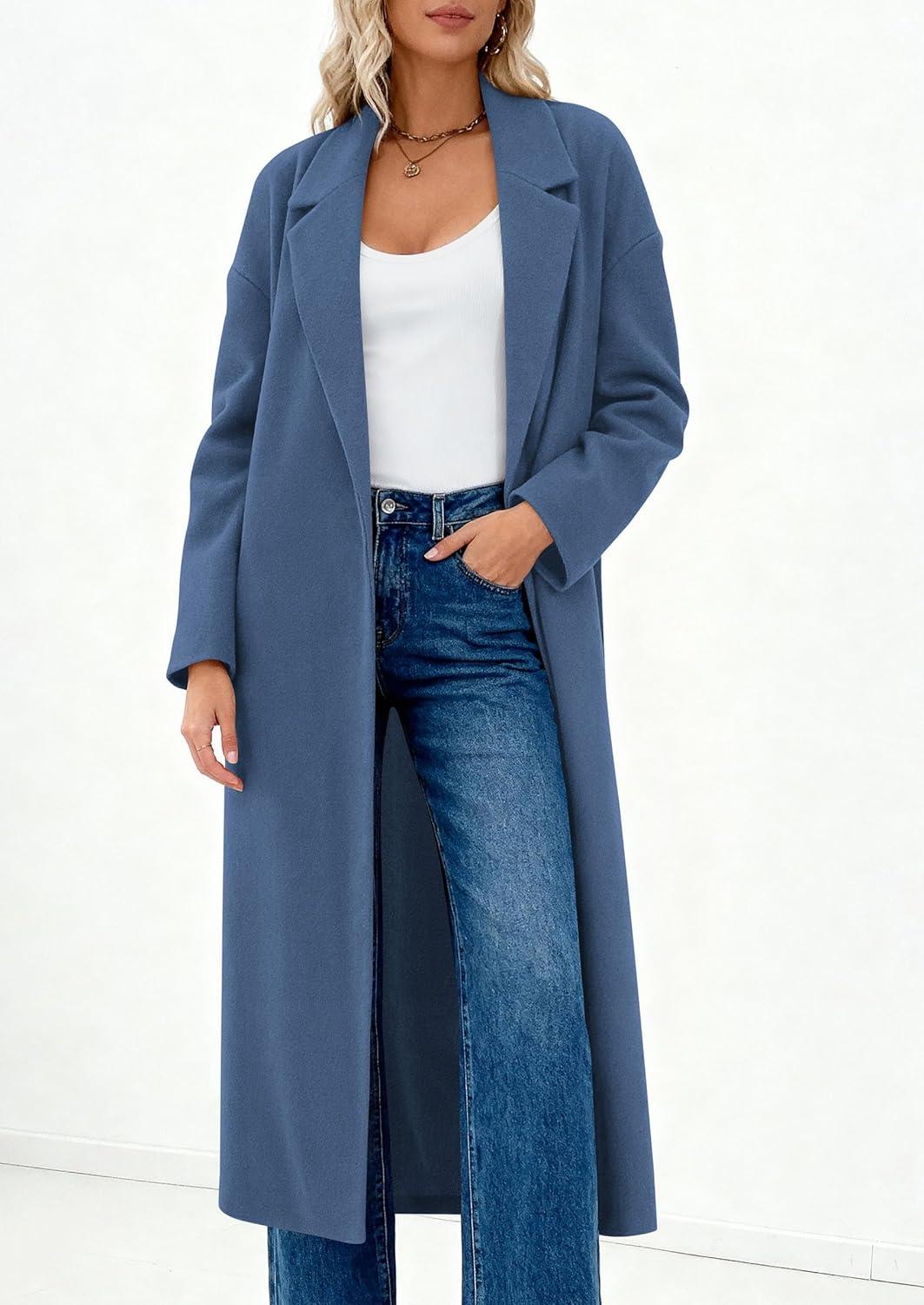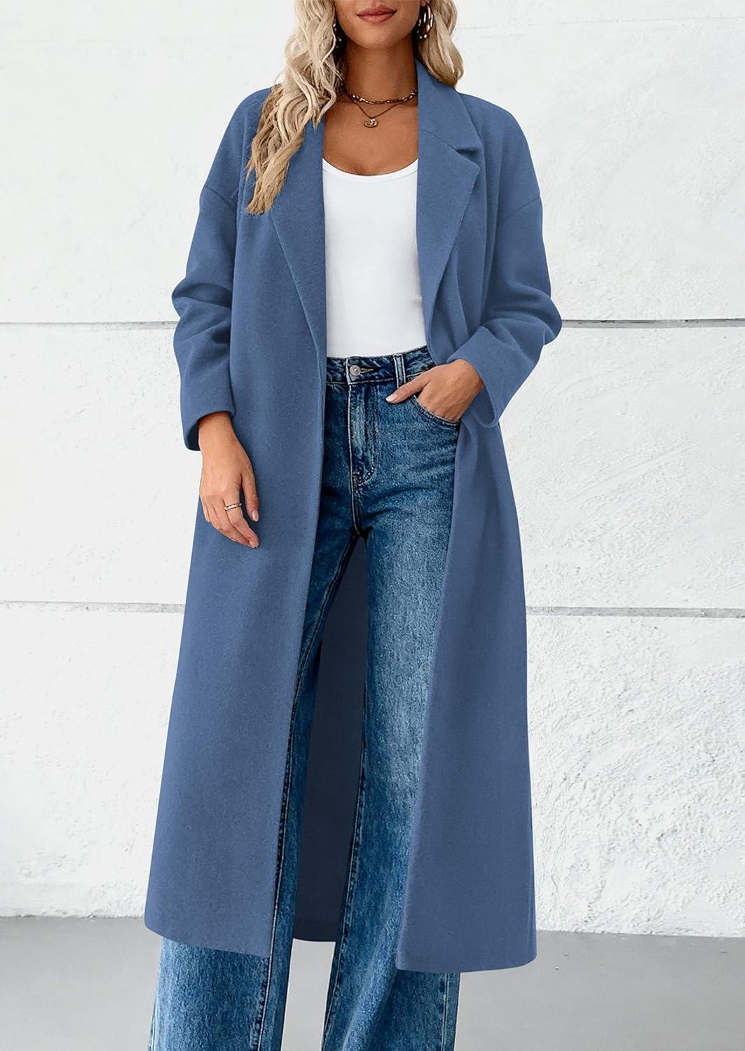 PRETTYGARDEN Womens Winter Coats 2025 Trendy Long Sleeve Notch Lapel Button Long Jackets Casual Oversized Vacation Outfits(Grey Blue)