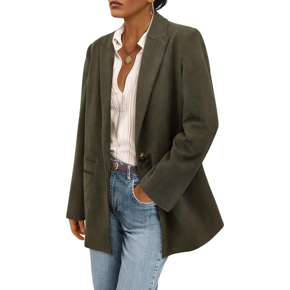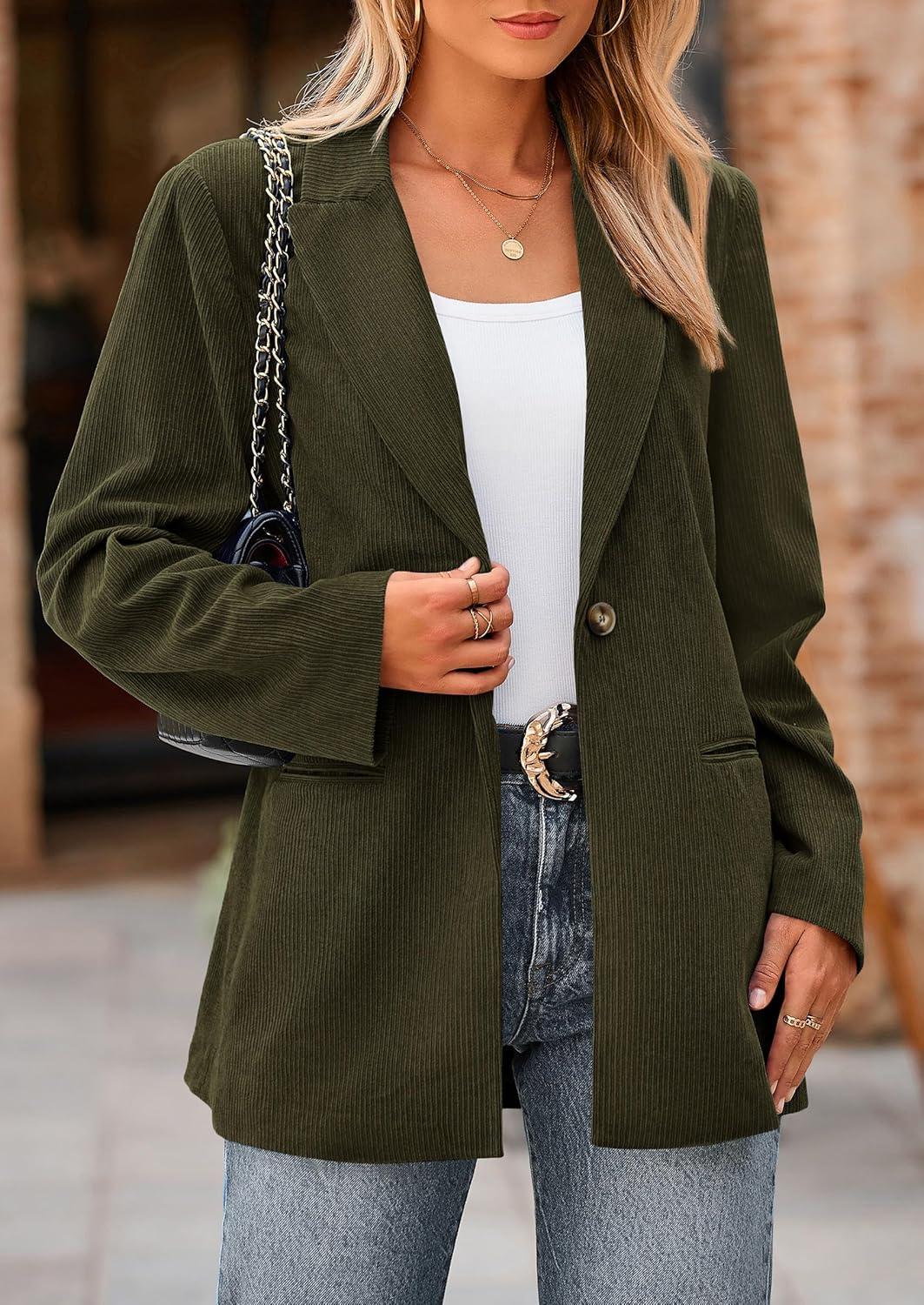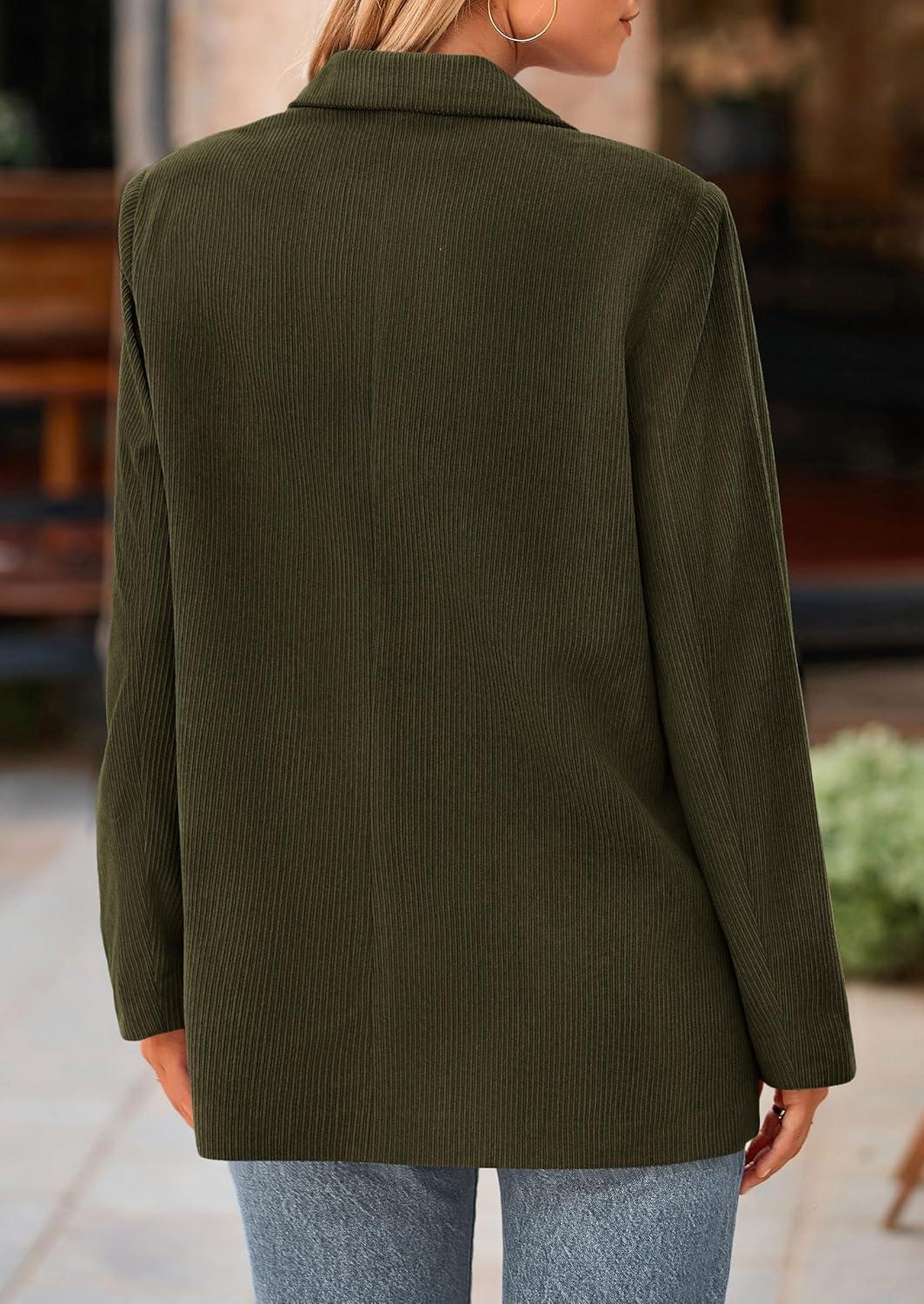PRETTYGARDEN Women's Winter Corduroy Blazers Jackets Dressy Casual Ribbed Long Sleeve Lapel Fashion Work Business Outerwear(Army Green)