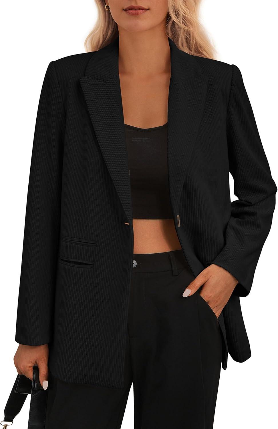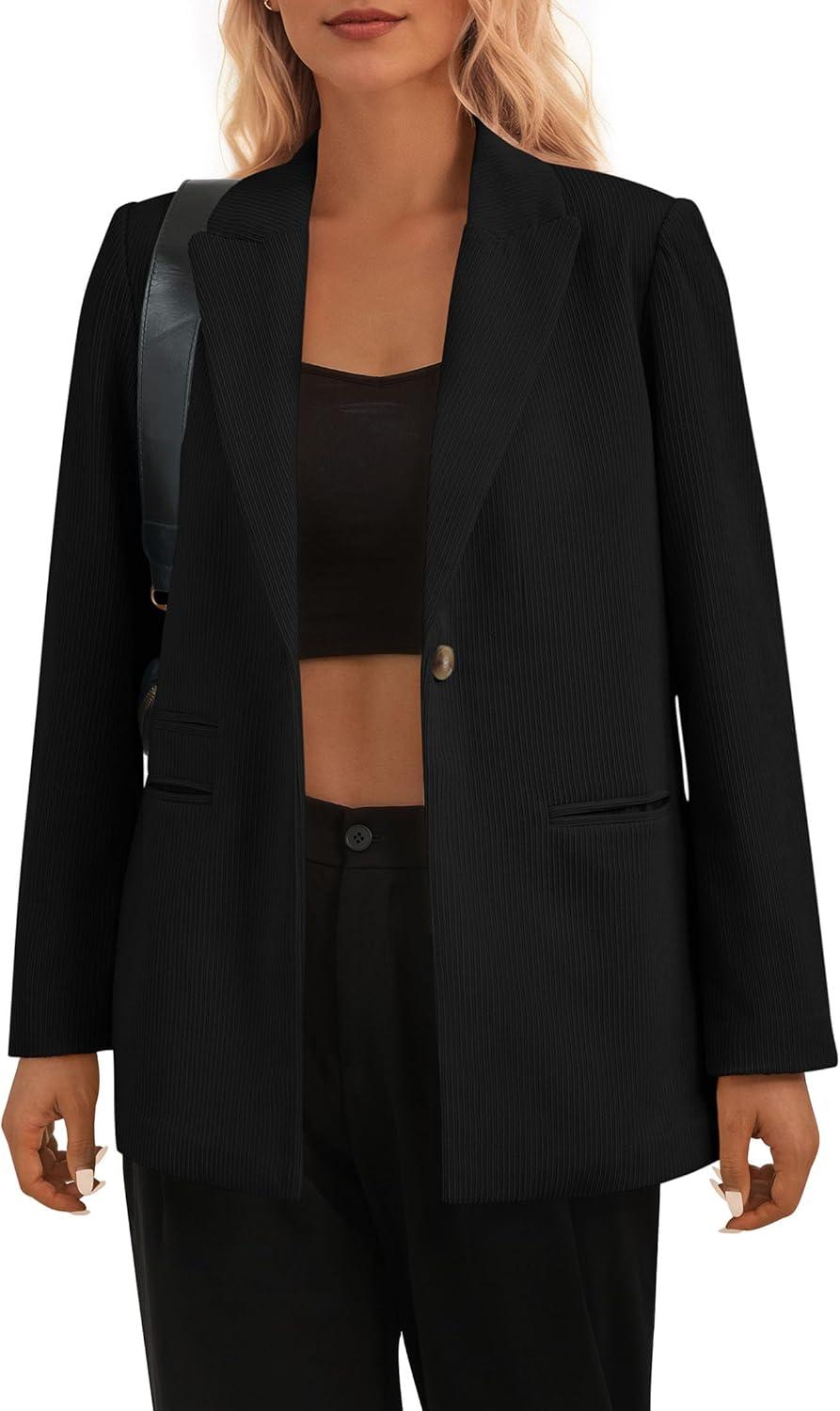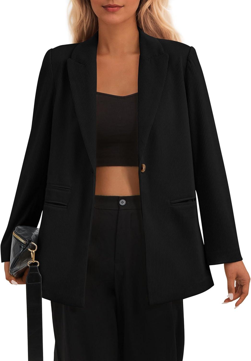 PRETTYGARDEN Women's Winter Corduroy Blazers Jackets Dressy Casual Ribbed Long Sleeve Lapel Fashion Work Business Outerwear(Black)