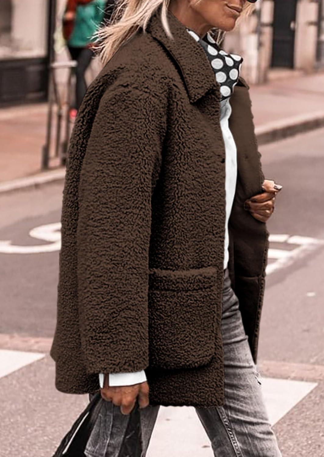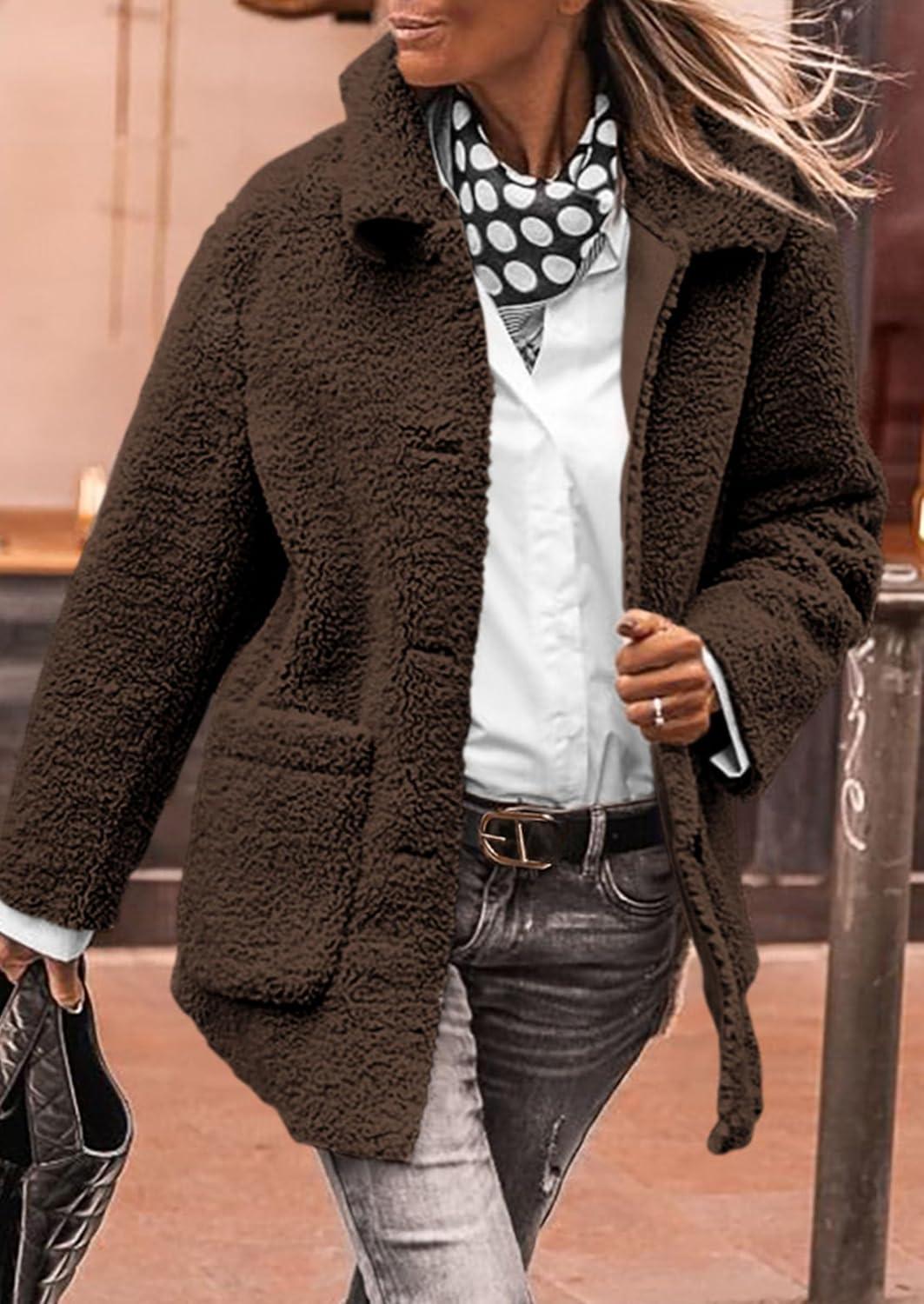 PRETTYGARDEN Women's Winter Faux Fur Coats Long Sleeve Lapel Button Down Pockets Fleece Sherpa Jacket Casual Trendy Outerwear(Coffee)