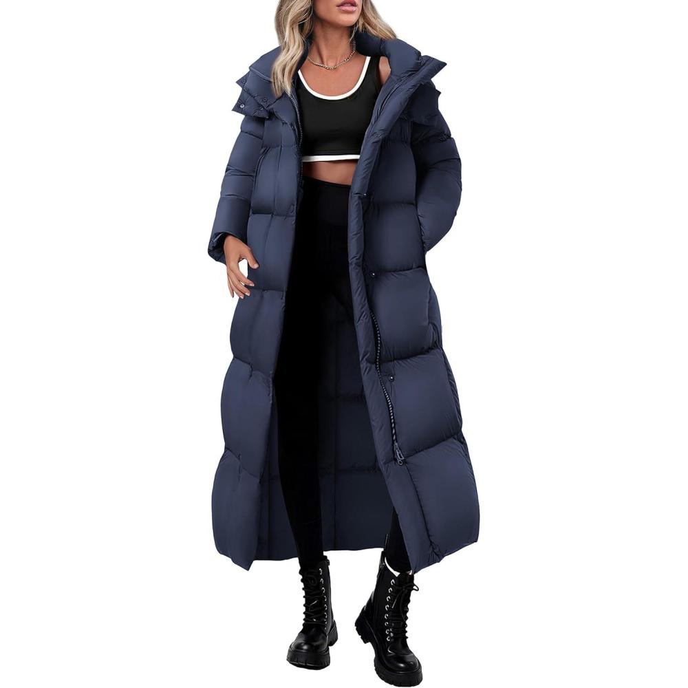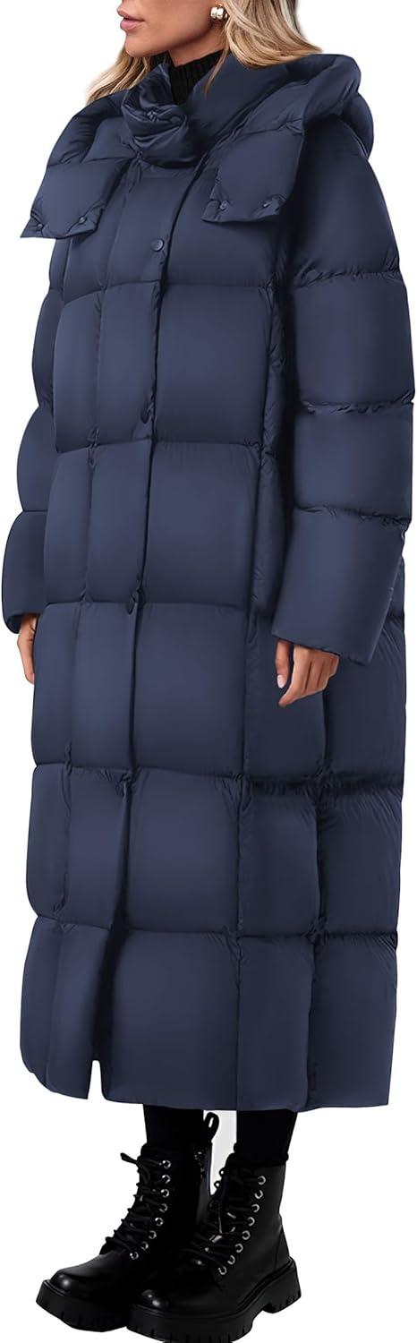 PRETTYGARDEN Women’s Winter Long Puffer Coats Hooded Zip Up Casual Thickened Down Jackets Trendy Warm Clothes Outerwear(Dark Blue)