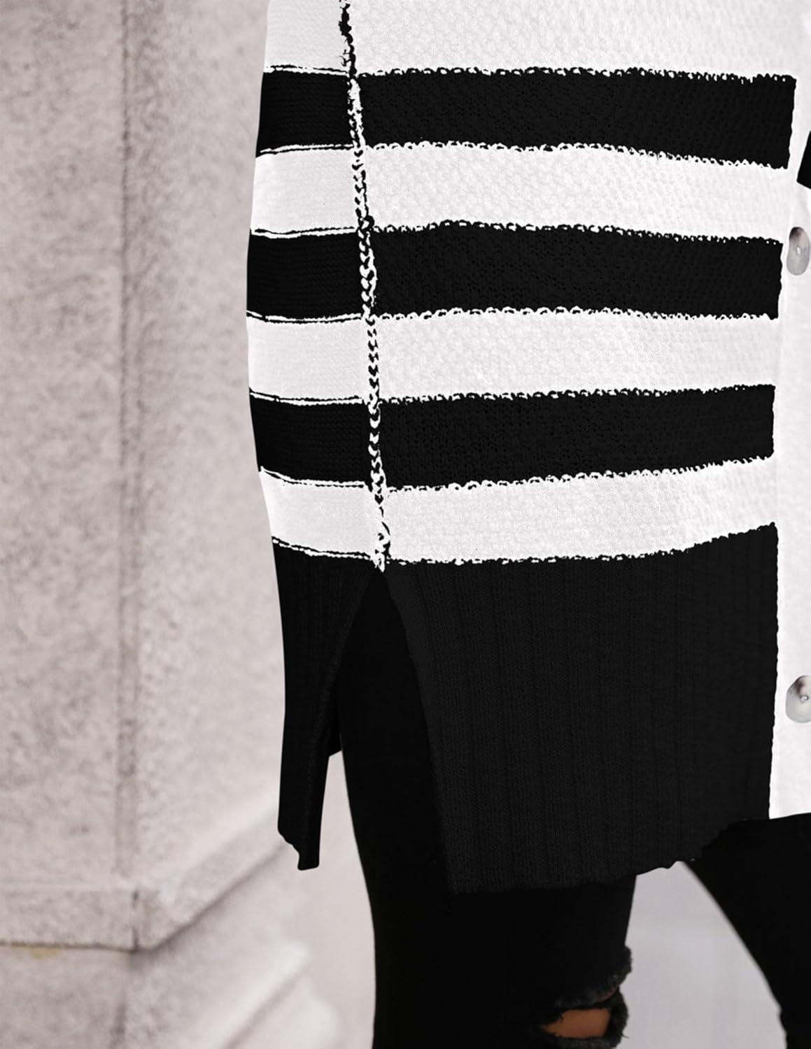 PRETTYGARDEN Women’s Winter Striped Cardigan Sweaters Long Sleeve Button Down Open Front Chunky Knit Oversized Sweater Coat(Striped Black White)