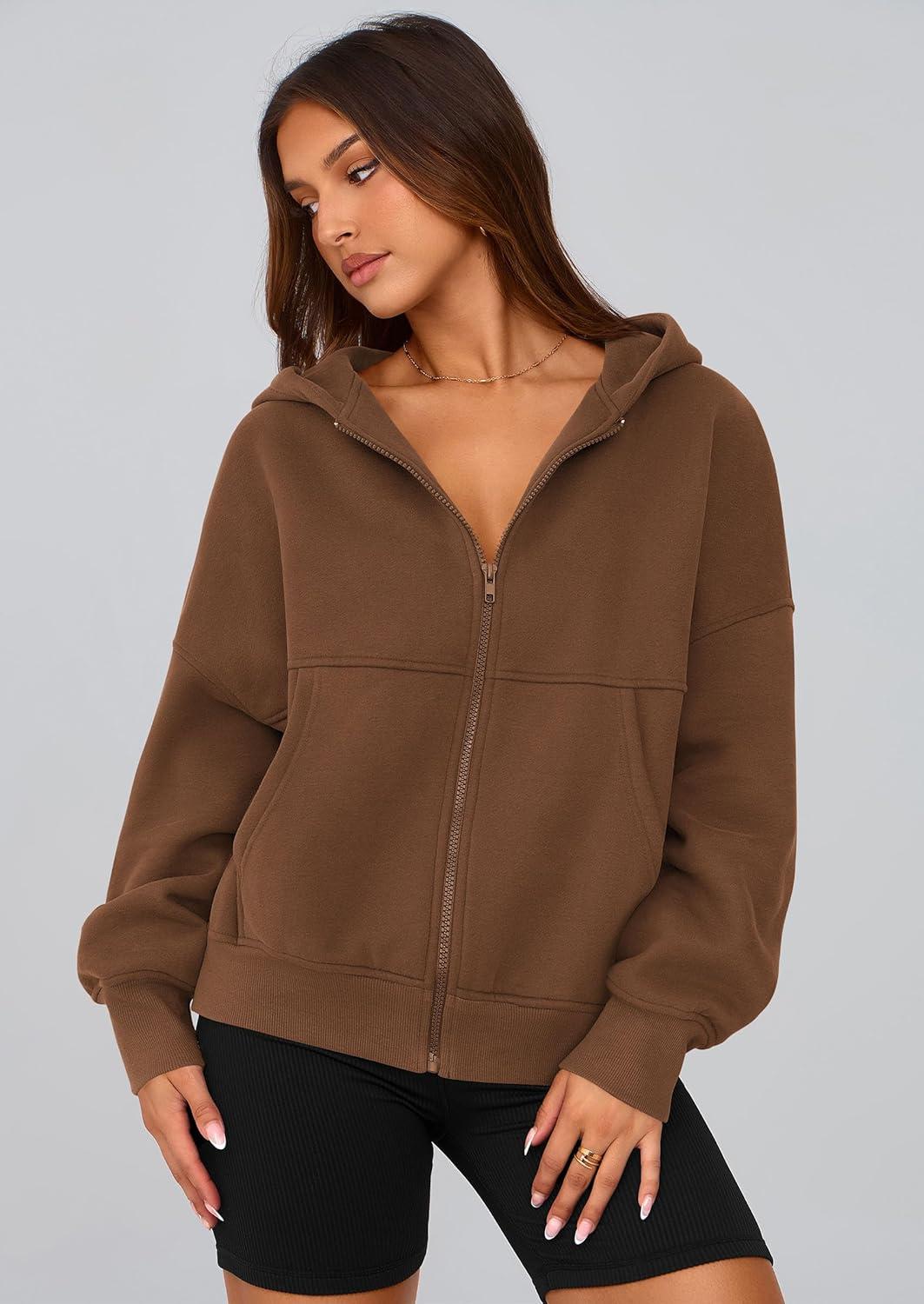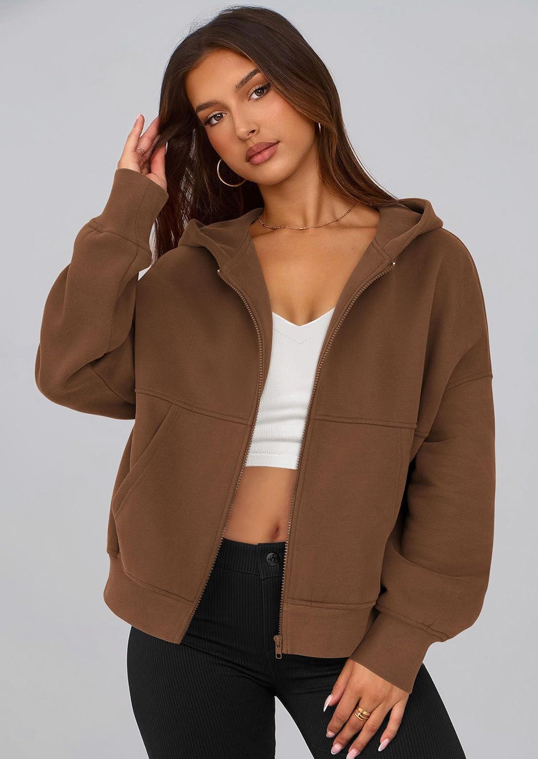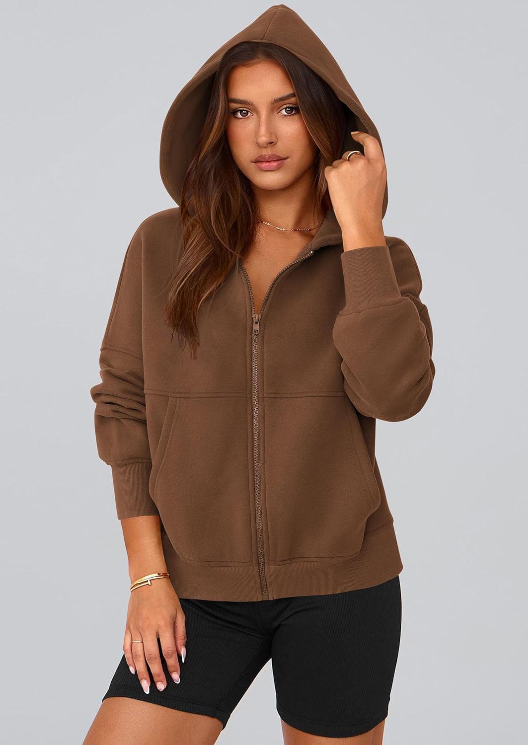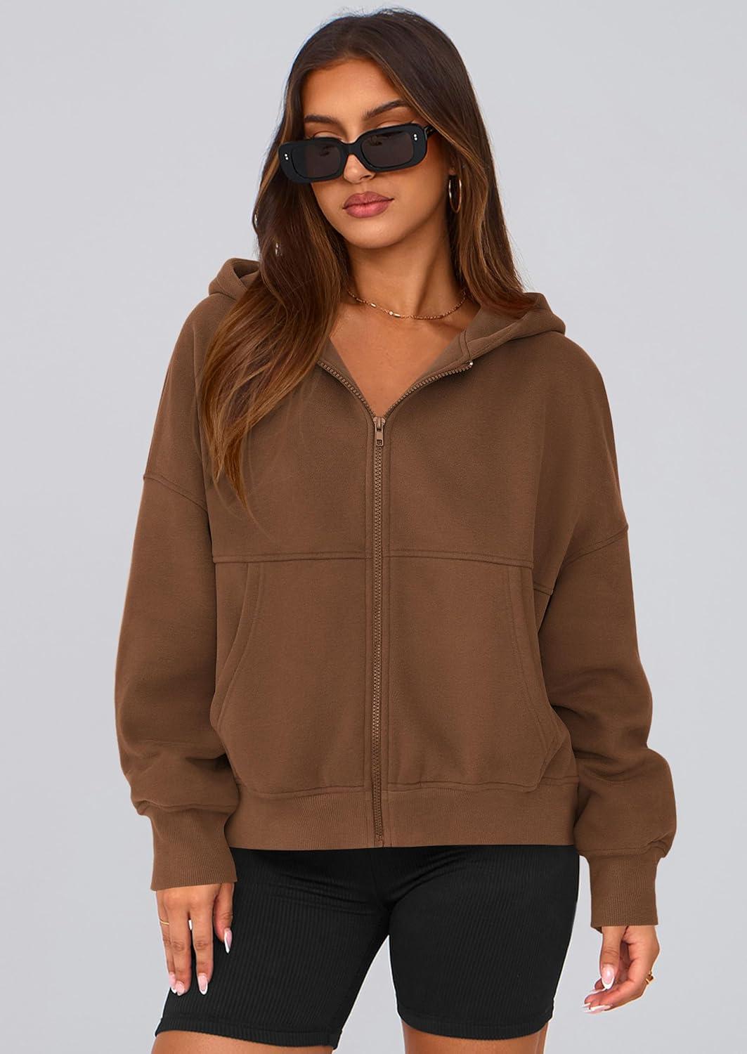 PRETTYGARDEN Women's Zip Up Y2K Hoodies 2025 Fall Fashion Long Sleeve Hooded Fleece Sweatshirts Casual Jacket Winter Clothes(Brown)