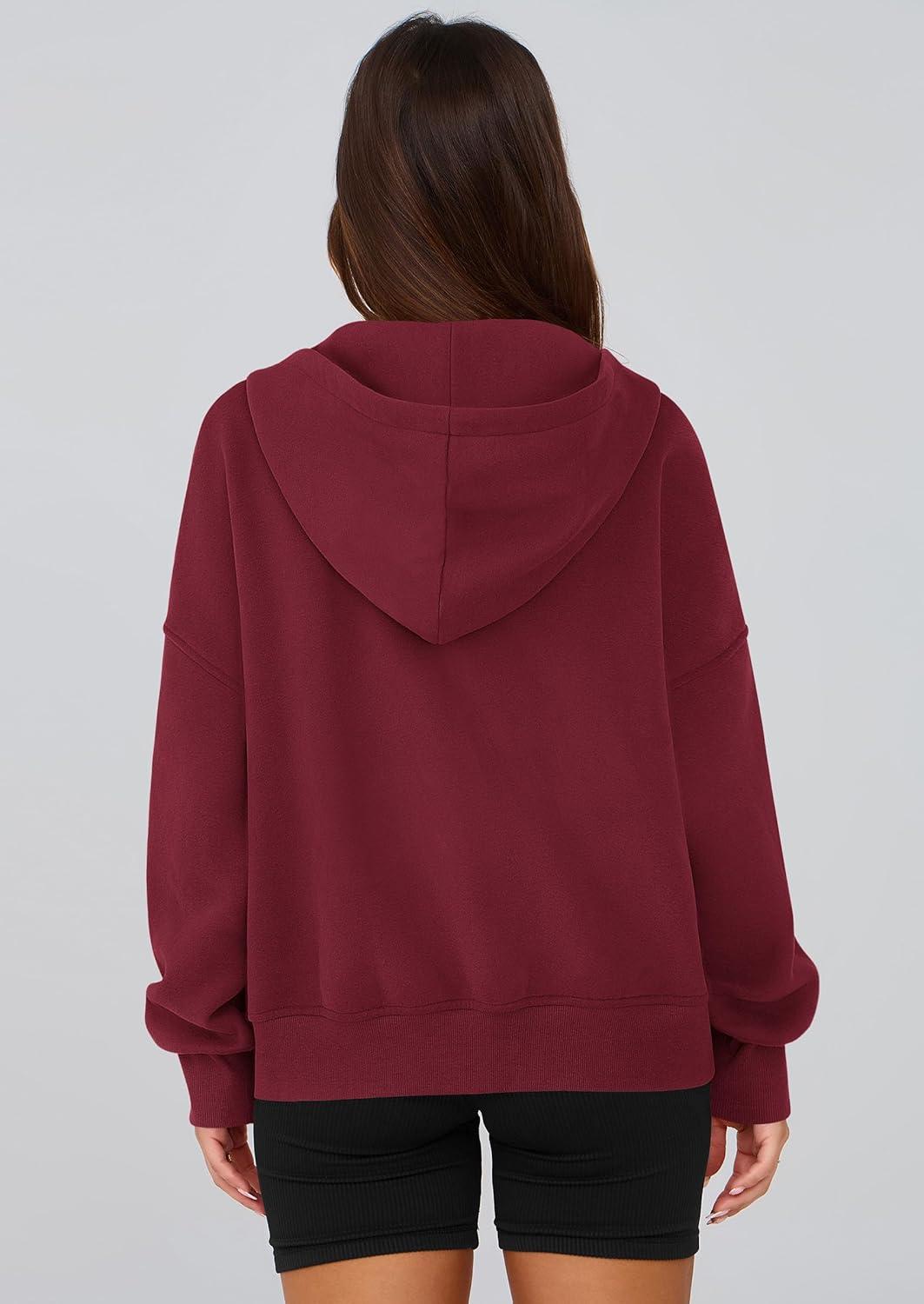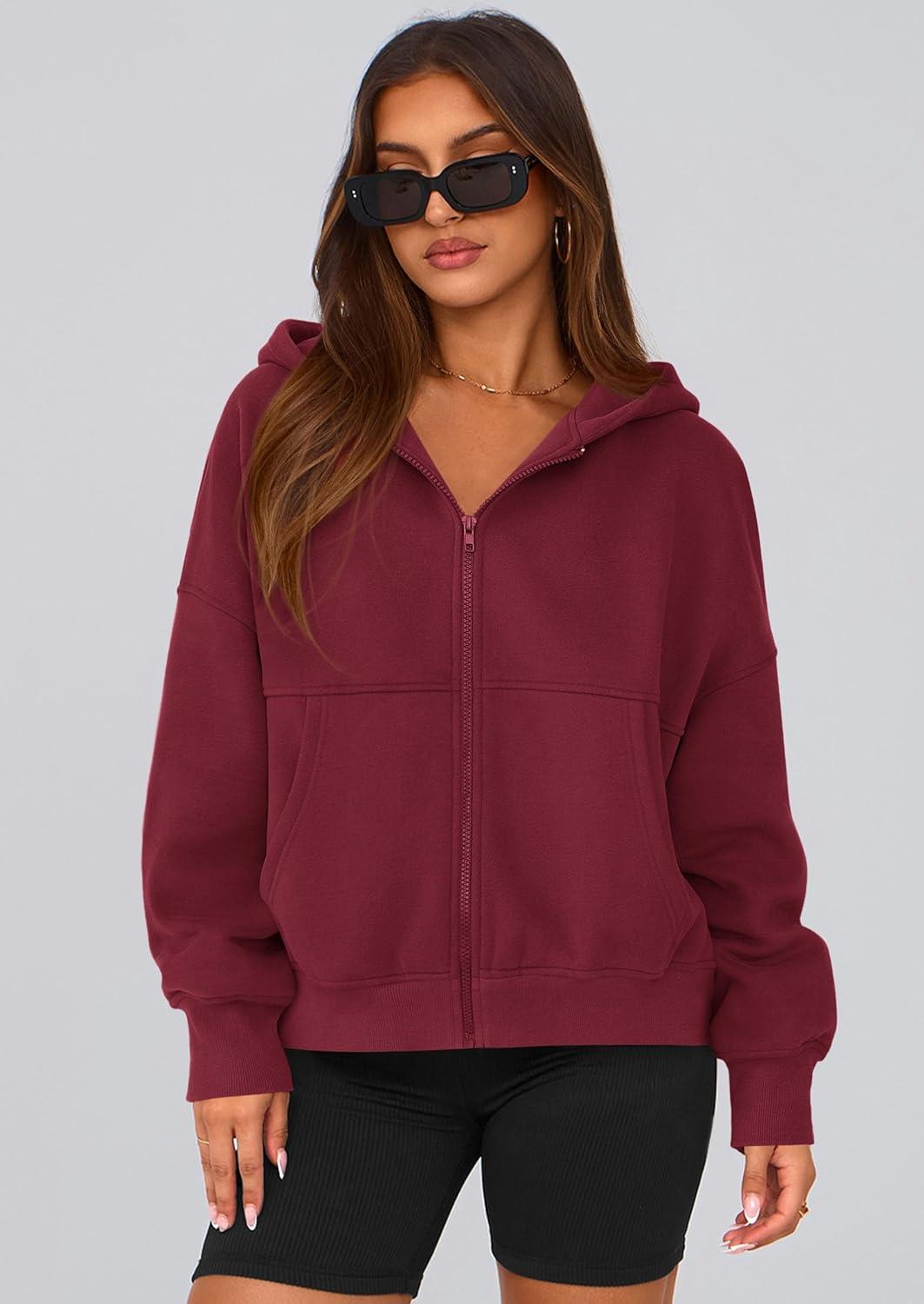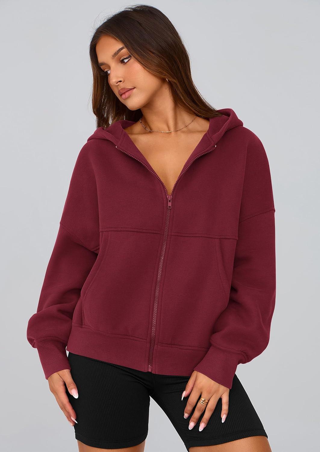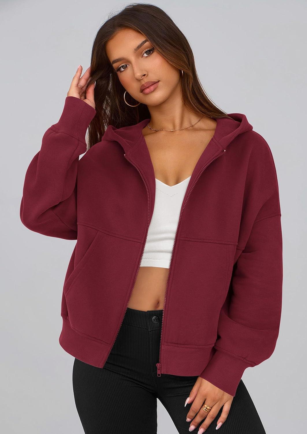 PRETTYGARDEN Women’s Zip Up Y2K Hoodies 2025 Fall Fashion Long Sleeve Hooded Fleece Sweatshirts Casual Jacket Winter Clothes(Burgundy)