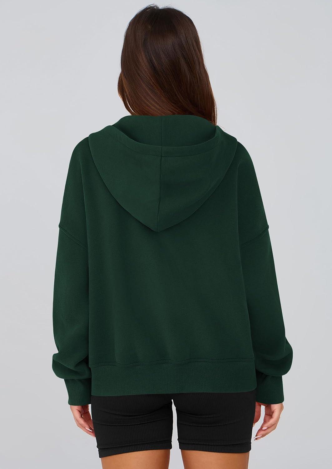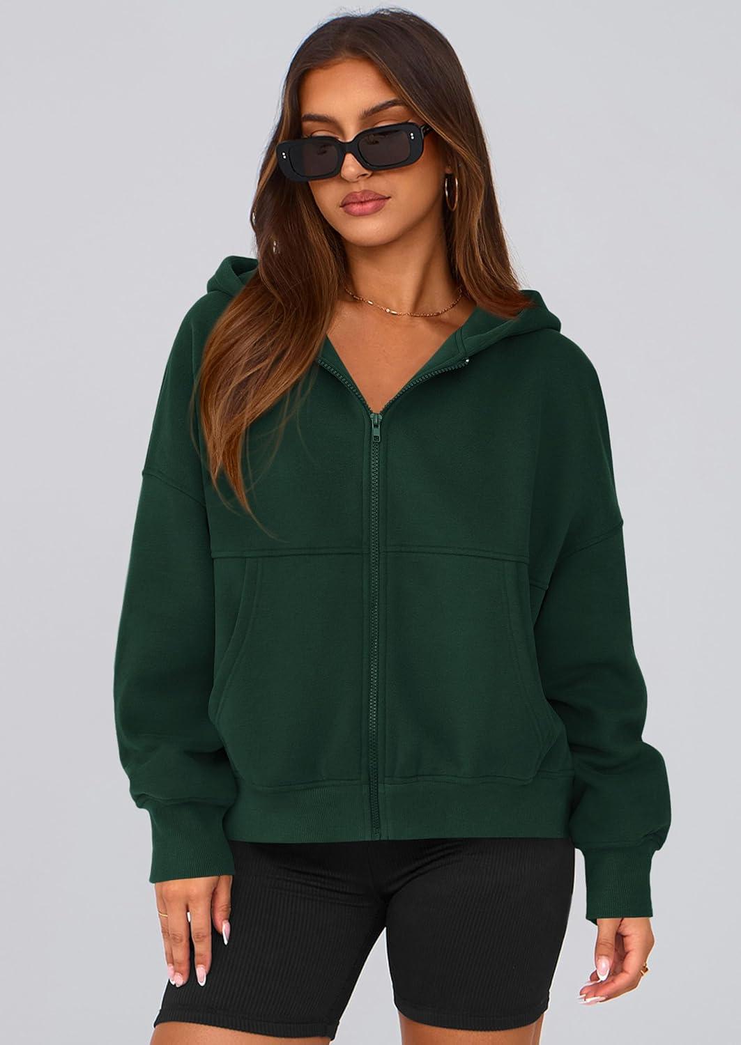 PRETTYGARDEN Women's Zip Up Y2K Hoodies 2025 Fall Fashion Long Sleeve Hooded Fleece Sweatshirts Casual Jacket Winter Clothes(Dark Green)