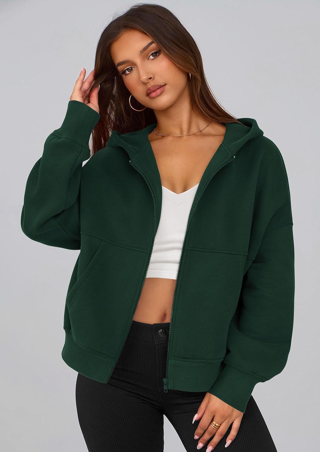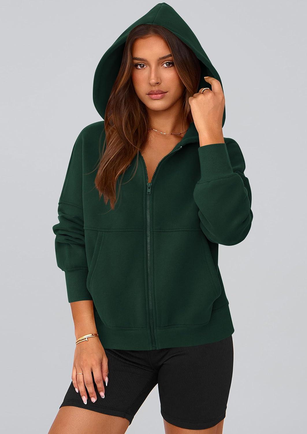 PRETTYGARDEN Women’s Zip Up Y2K Hoodies 2025 Fall Fashion Long Sleeve Hooded Fleece Sweatshirts Casual Jacket Winter Clothes(Dark Green)