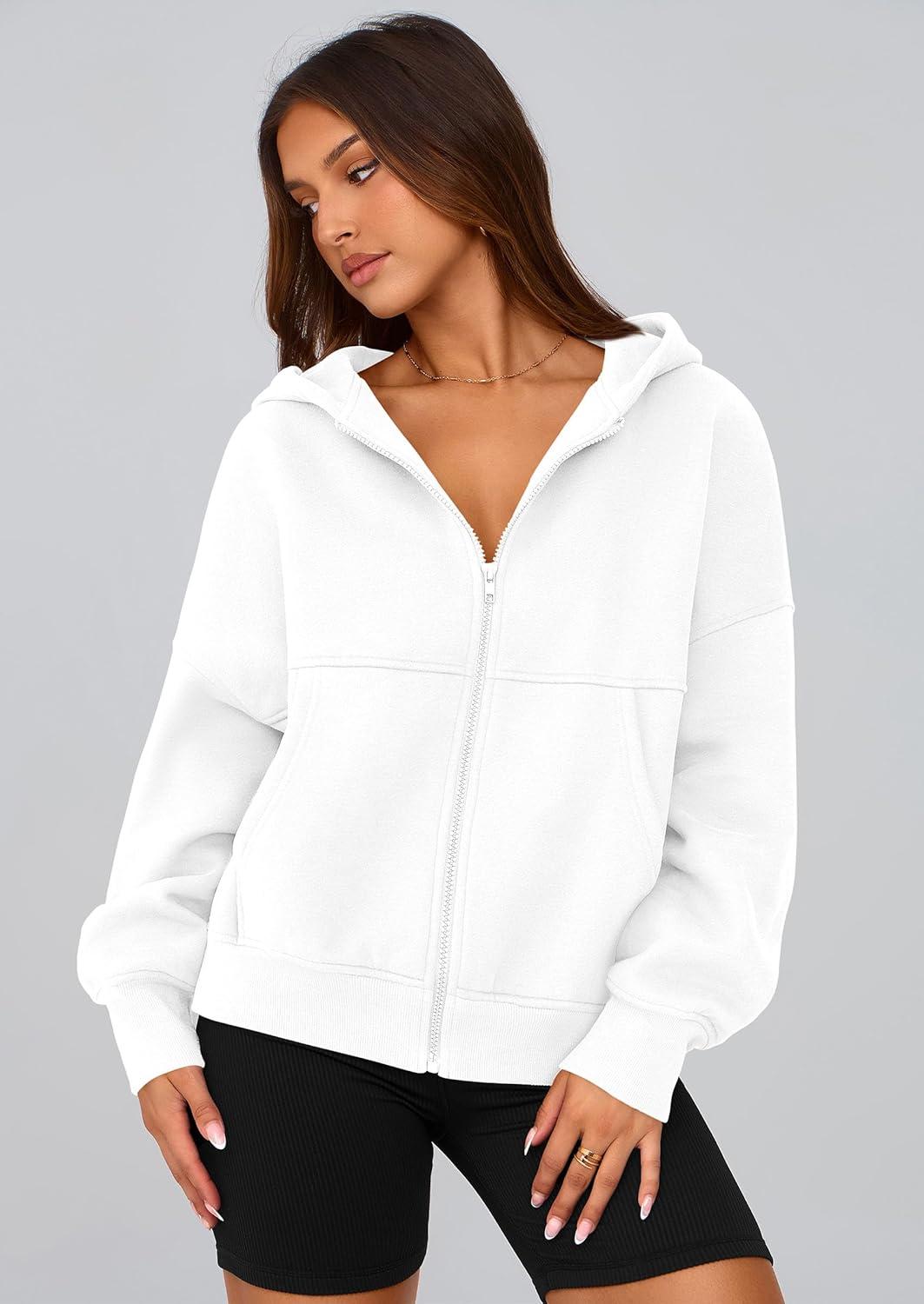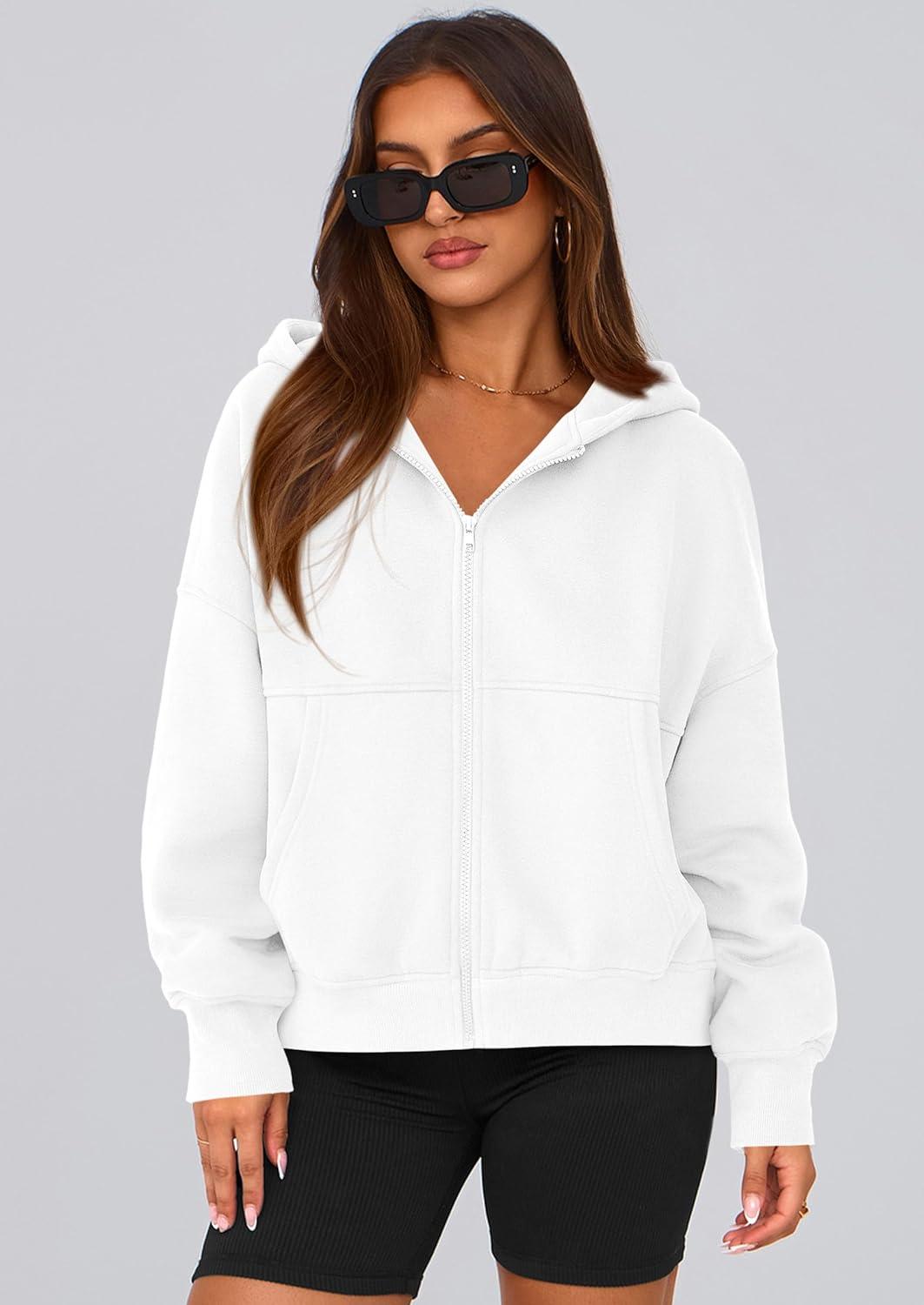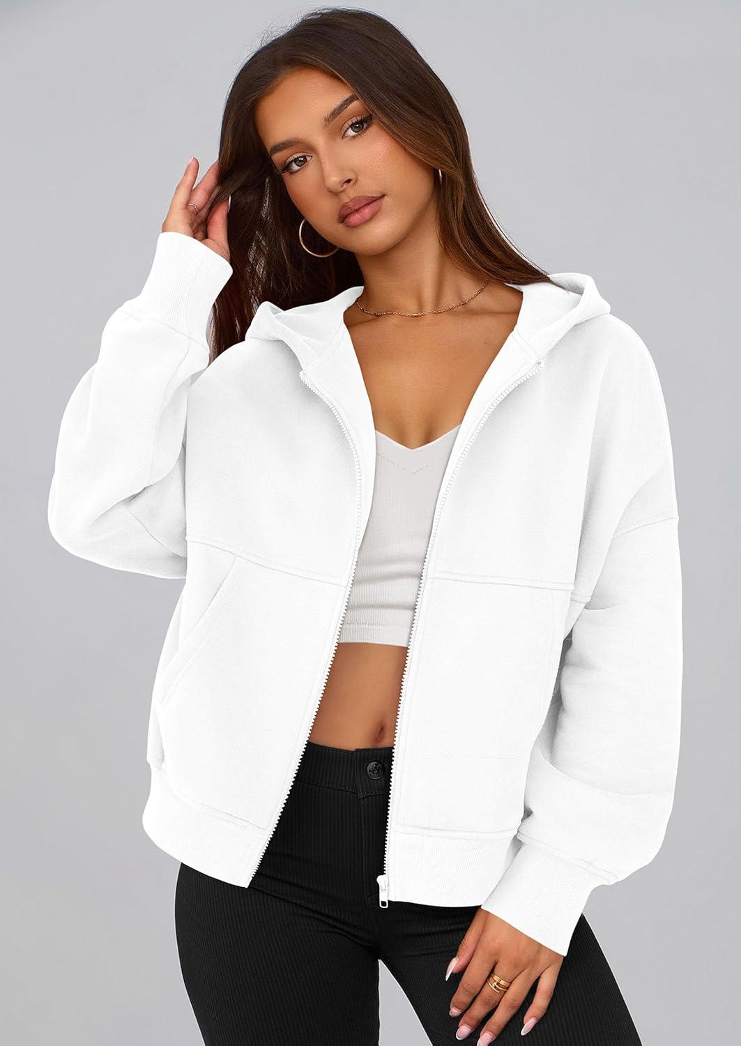 PRETTYGARDEN Women's Zip Up Y2K Hoodies 2025 Fall Fashion Long Sleeve Hooded Fleece Sweatshirts Casual Jacket Winter Clothes(White)