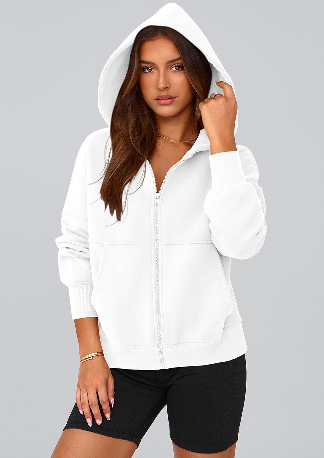 PRETTYGARDEN Women’s Zip Up Y2K Hoodies 2025 Fall Fashion Long Sleeve Hooded Fleece Sweatshirts Casual Jacket Winter Clothes(White)